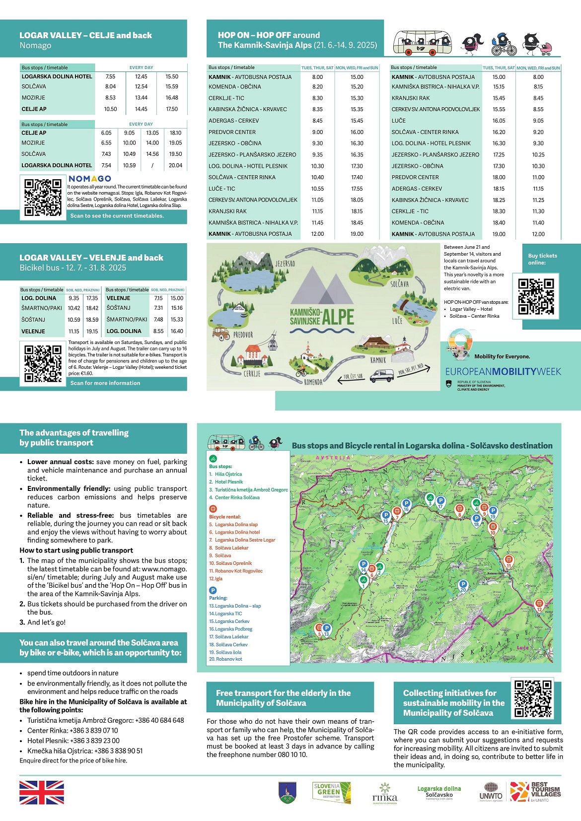 With various transport options such as public buses »Nomago«, (e-)bike rentals, the free Prostofer service for seniors, and connecting “Hop on-Hop off” and “Bicikelbus” routes, we can reduce private car use and help preserve our alpine valley.